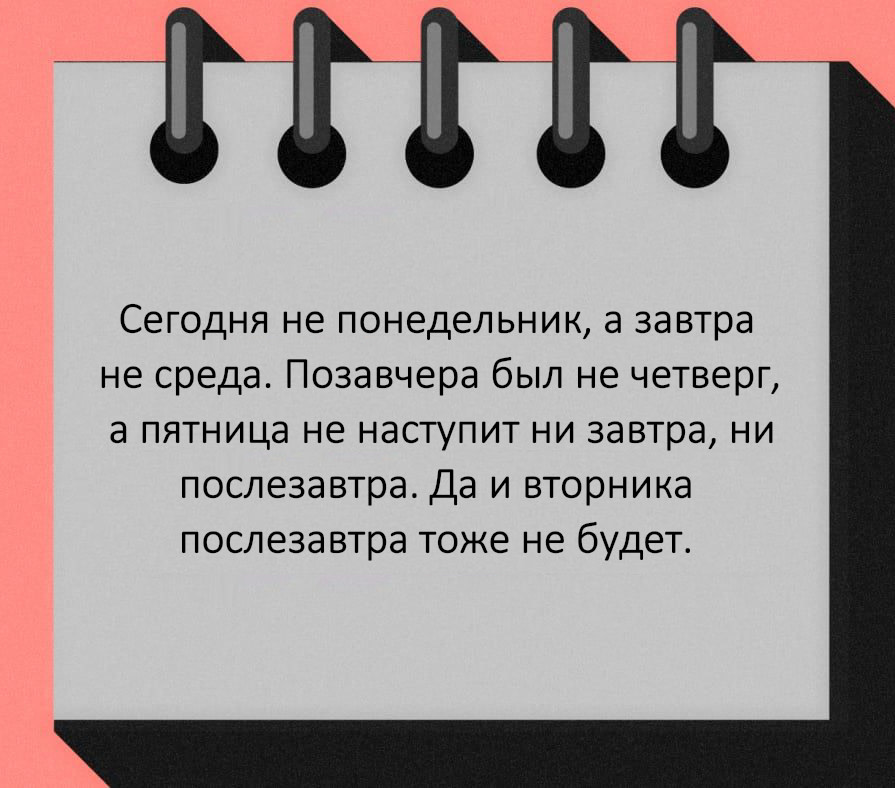 *** Четверг — денег нет. *** Самое прекрасное в четверге – это ожидание пятницы! Отдыхать в среду, конечно, круто, но четверг становится понедельником. *** И четверг может стать понедельником, если хорошенько выпить в среду.