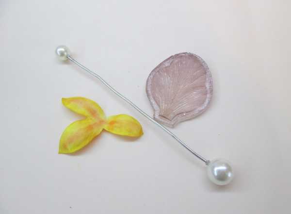 Серединку орхидеи (губу) прислоните к горячему утюгу, придерживая спицей в центре детали до тех пор, пока деталь не начнет «сворачиваться» внутрь: