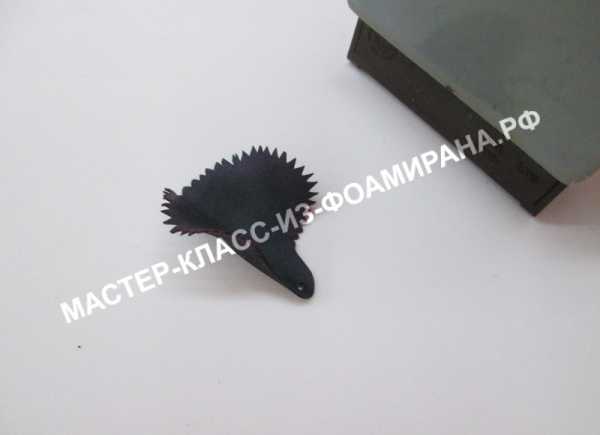 Приложите картонные шаблоны к полоске фома и обведите по контуру вязальной спицей, деревянной палочкой или зубочисткой. Мне очень нравится работать обычной спицей для вязки носков, она скользит гладко, не оставляя зацепки на фоамиране, в отличие от зубочистки.