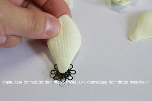Смажьте супер-клеем кончик удлиненного лепестка и прижмите к металлической шапочке: