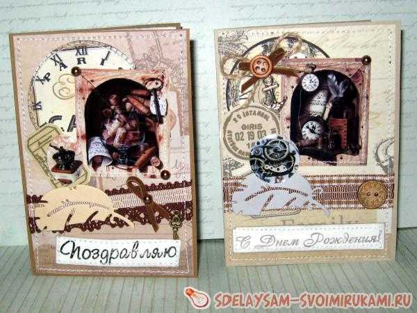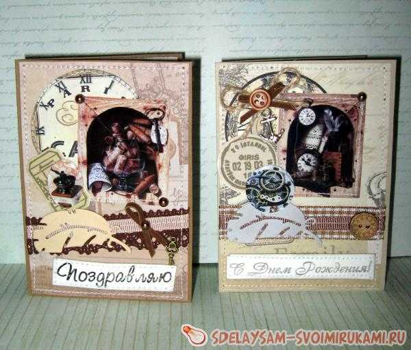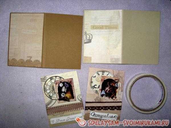 Осваиваем скрапбукинг. Открыточки нашему папе на День рождения.