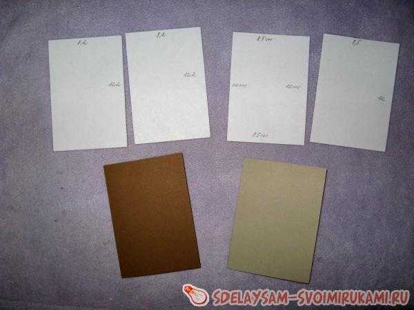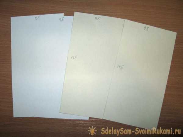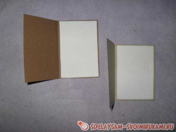 Из ватмана вырезаем два прямоугольника, чтобы вклеить вовнутрь открыток для поздравительной надписи.