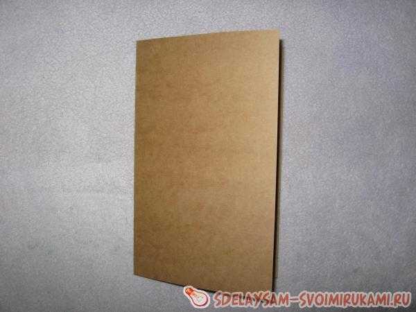 Приступаем, вырезаем основу открытки из крафт-картона, делим ее пополам и получаем в сложенном виде заготовку размером 10*16 см.