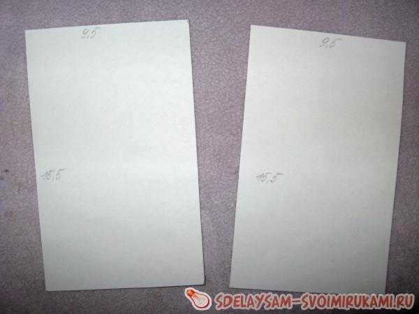 Из одного листа скрапбумаги вырезаем два прямоугольника 9,5*15,5 см.