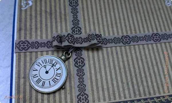 А вот и сама коробочка. Размер 15,5 х 15,5 см, сделана по принципу маминых сокровищ. Украшена репсовой лентой «ЖАККАРД» и металлической подвеской «часы».