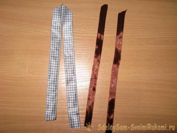 • Репсовая лента темно-коричневого цвета шириной 5 мм; Ленточка бело-серая в клетку из атласа шириной 12 мм;
