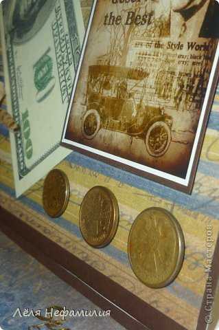 Выберите хороший картон под основу, сувенирные банкноты, монетки и бусинки.