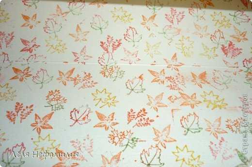Внутри не стала наклеивать скрап бумагу, а дала порезвиться доче — она наштамповала вот такую красоту из осенних листочков. Все-таки день рождения у него в сентябре — самая пора листопада! Потом на них наклеим поздравление. Пока ищем подходящий случаю душевный текст))