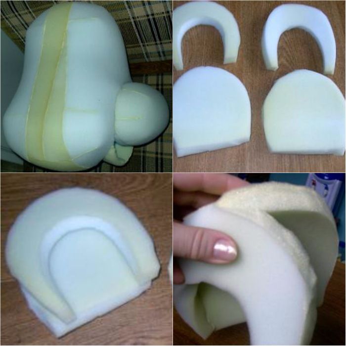 Для изготовления изделия вооружитесь поролоном, плотным материалом, линейкой, ножницами, иглой и нитками, а также машинкой для шитья (если у вас ее нет, можно шить руками).