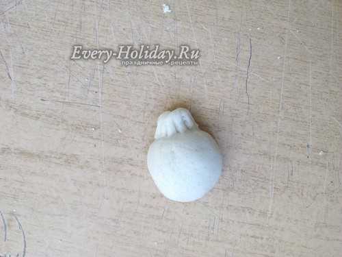 Теперь скатываем шарик и прилепляем его вверху на туловище.