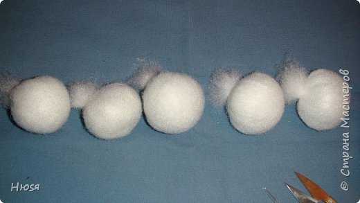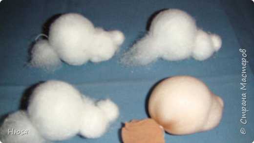 И так…Где будет стоять восклицательный знак,обратите особое внимание. Я делаю сразу по 10 шт. Формируем шарики, плотные!!, желательно одного размера.Затем меньше и еще меньше, для носика, как на фото. Надо эти три заготовки привалять (прихватить) друг с другом, чтобы удобно было вложить в капрон. У меня две иглы, соединенные между собой изолентой