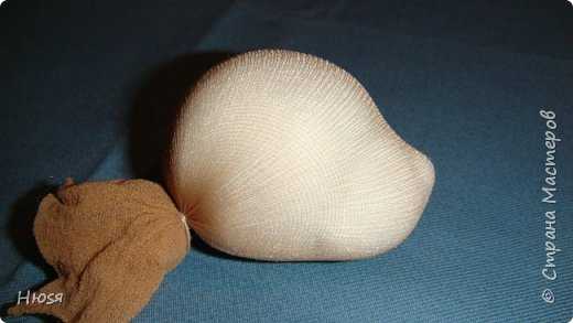 Чуть не забыла про ушки. То, что они на проволочной основе обтянутой синтепоном и капроном, я думаю, понятно. А вот утяжки.. Чтобы придать мордочке форму, я делаю утяжки, в области ушек- туда сюда, сюда туда. Таким образом и мордочка формируется и места для вклеивания ушек получаются.