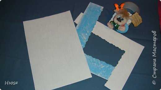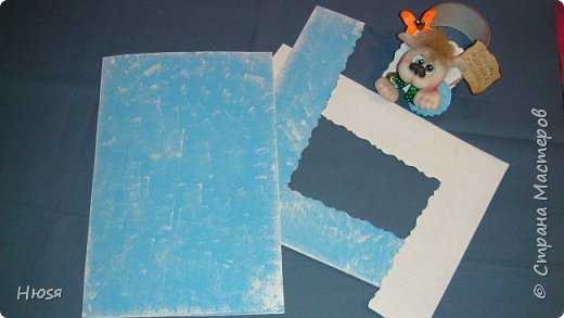 Дальше… картон Я очень люблю картон из под офисной бумаги. у меня такая коробка нашлась. Разрезала. Покрасила одну сторону в белый цвет (цвет холодильника). Другую в любой, у меня была голубая краска. И прочпокала ее сухой губкой белой краской, чтобы не скучно было.