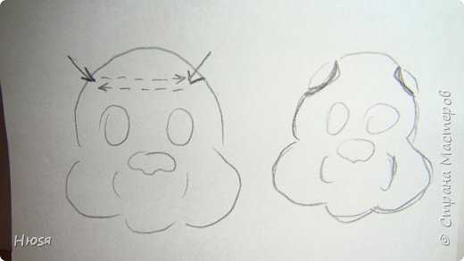 Стеком или зубочисткой делаем аккуратные вмятины для глаз и провей. Формируем и ту часть морды, которая идет от носа.