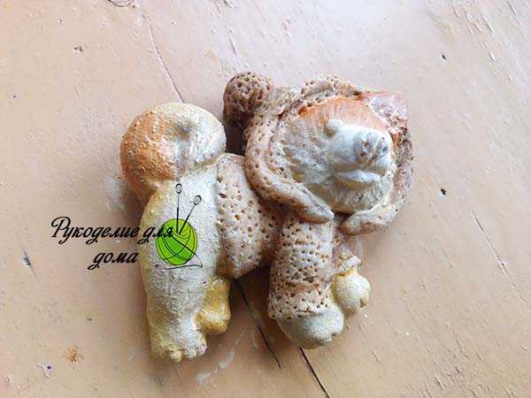 Готового песика сушим в духовке на минимальной температуре. Когда на работе появится легкая корочка, собаку нужно будет перевернуть на другую сторону и сушить до готовности. Процесс это не быстрый, но так не появится трещин и деформации.