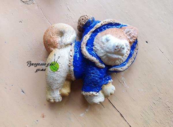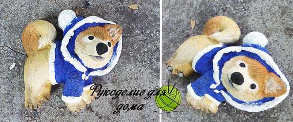 Когда краска высохнет, собаку нужно покрыть лаком с лицевой стороны и по бокам, обратную сторону фигурки покрывать не нужно.
