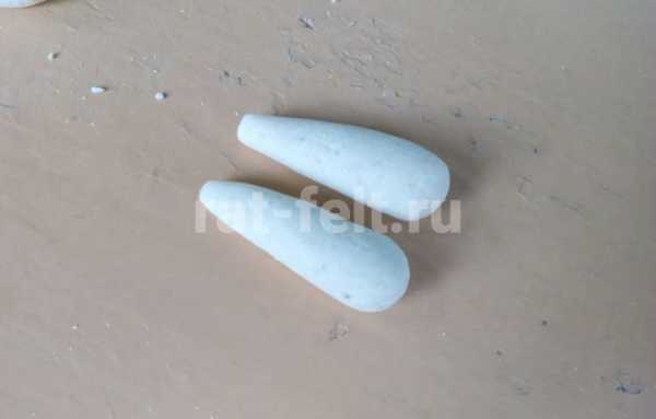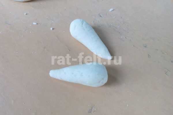 Теперь из одинаковых кусочков делаем 2 лапки, которые по форме напоминают яйцо.
