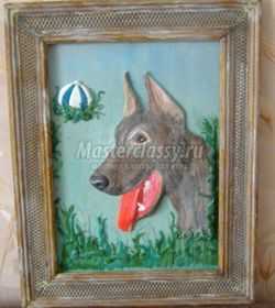 Роспись собаки из соленого теста
