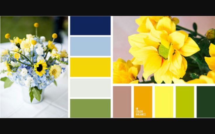 Желтый выбирайте теплый, ближе к оранжевому. Он сгладит излишнюю серьезность и сдержанность, а также подчеркнет благородную глубину темно-синего цвета. Синий же будет уравновешивать своего беспечного друга.