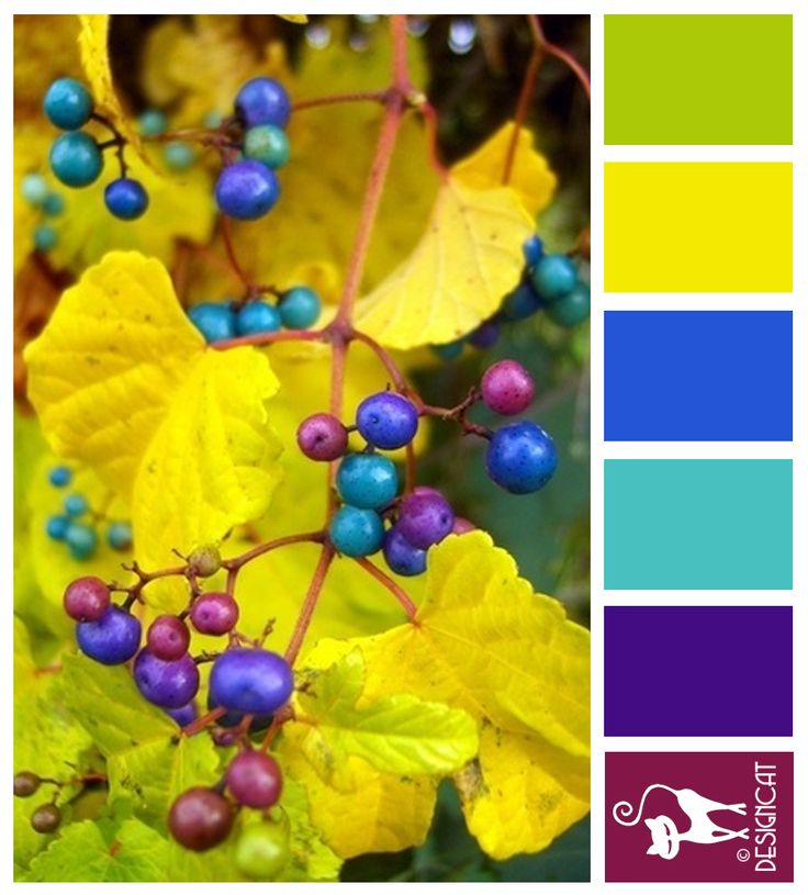 Желтый и зеленый являются родственными цветами: в любом зеленом оттенке неизменно присутствует оттенок желтый. Палитра зеленого необычайно разнообразна, что открывает широкий простор для гармоничных сочетаний с другими цветами.