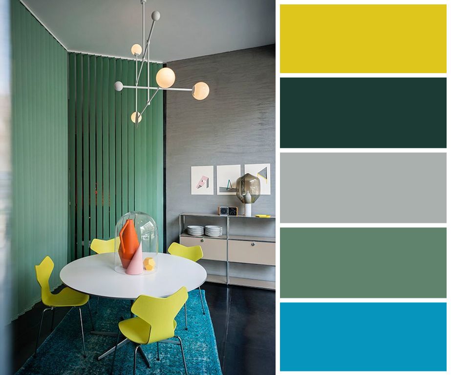 - теплый травяной в паре с бледно-лимонным желтым в уютной гостиной