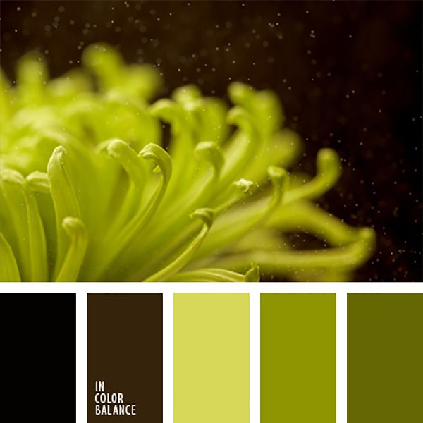 В интерьере желто-зеленая цветовая палитра отлично сочетается с теплыми древесно-коричневым, розово-красным, оранжевым, алым, терракотовым.