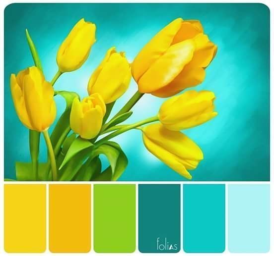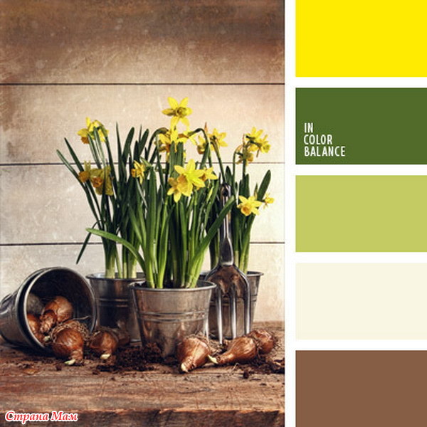 Теплый и жизнерадостный желтый. Многоликий и непредсказуемый своей изменчивостью зеленый. Смелые стильные дуэты предопределяют весьма колоритное сочетание. Холодный малахитовый и мифический изумрудный – насыщенные и броские, великолепно смотрятся в компании с ярко-желтыми оттенками тюльпанов или яичного желтка.