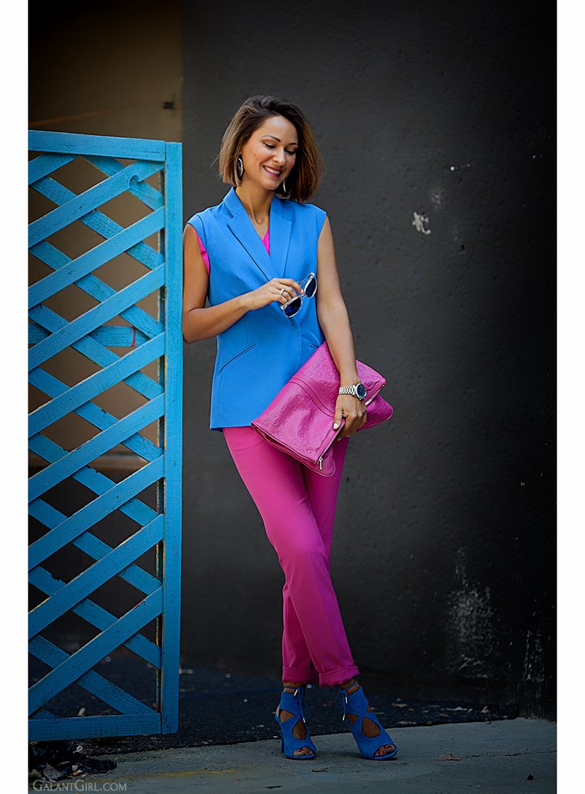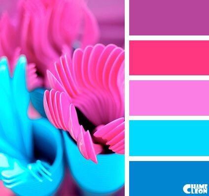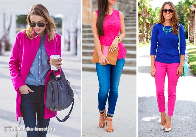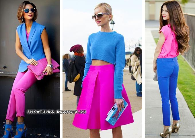 Яркий розовый создает активные драматичные сочетания с ярким синим