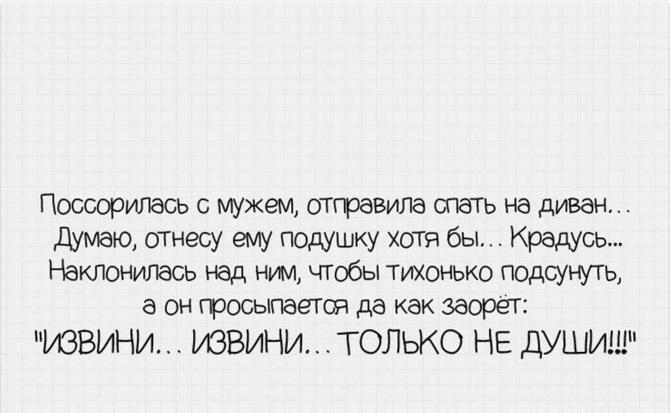 После ссоры муж идёт мириться: — Ты у меня такая красивая! — Ну да, а кричишь, как на страшную!