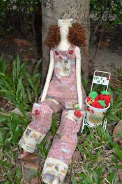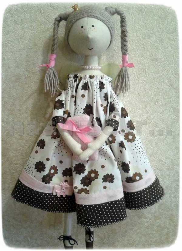 - Во-первых, все они изготовлены в узнаваемой цветовой гамме. Чаще всего в ней преобладают пастельные тона, спокойные и разбеленные оттенки основных цветов. Для одежды кукол используют ткань в полоску, клетку, горошек. Украшением ей служат различные рюши, кружева и пуговицы разных размеров.