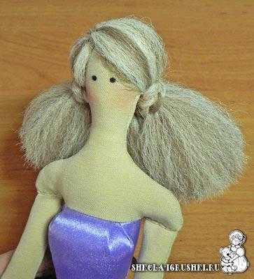 Когда я шила свою принцессу Тильду, то делала волосы очень простым способом.
