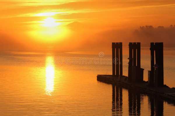 Солнце падает на озеро