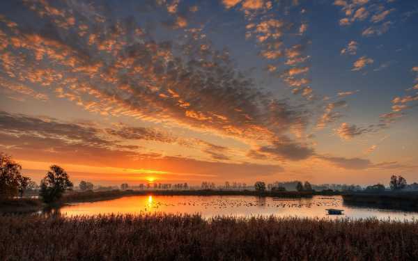 Одинокая лодка и рассвет