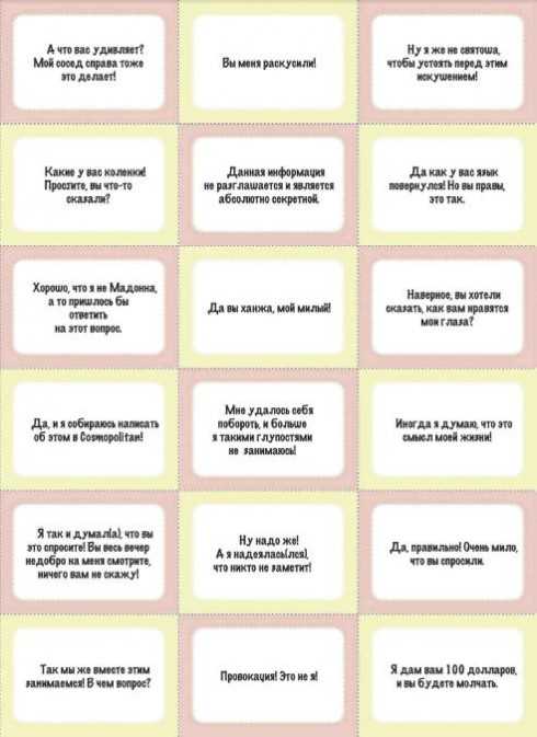 Карточки для гостей могут быть абсолютно любыми – постарайтесь пофантазировать. Главное – оригинальность. Чем необычней будут вопросы и ответы, тем больше эмоций вызовет игра.