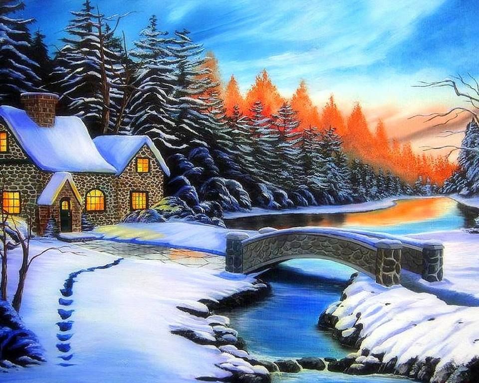 Зимняя картина. Зима картинки.
