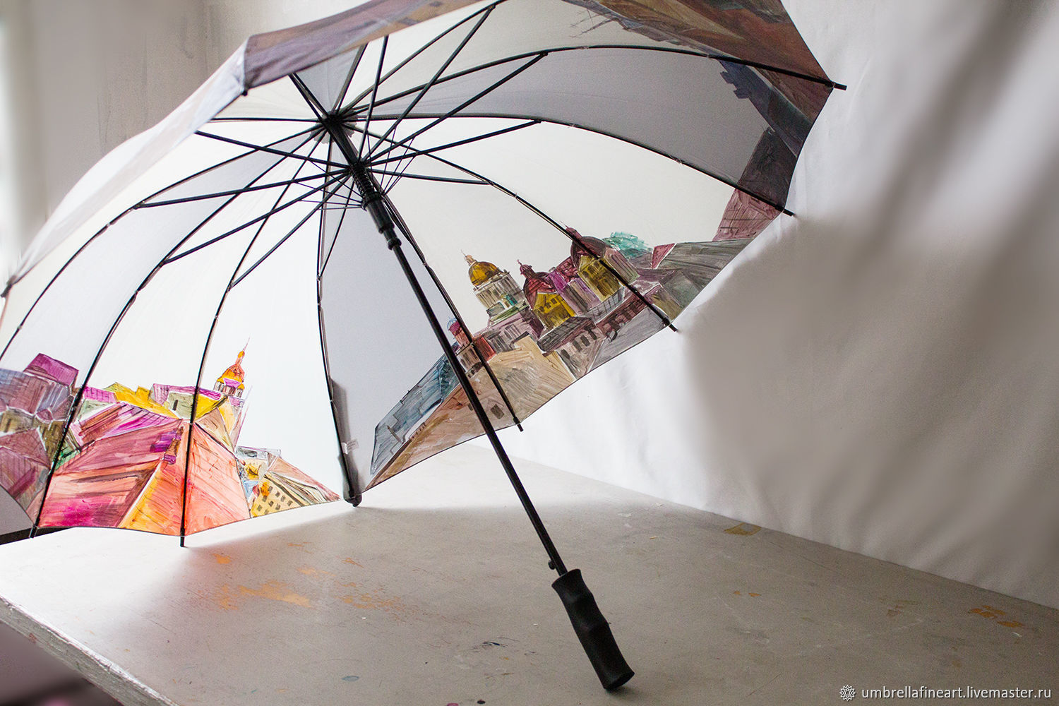 - Зонт с рисунком на заказ – проверьте, вдруг в вашем городе есть чудо-мастера, которые отпечатают предложенное вами фото или рисунок на зонте-подарке.