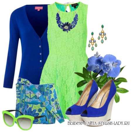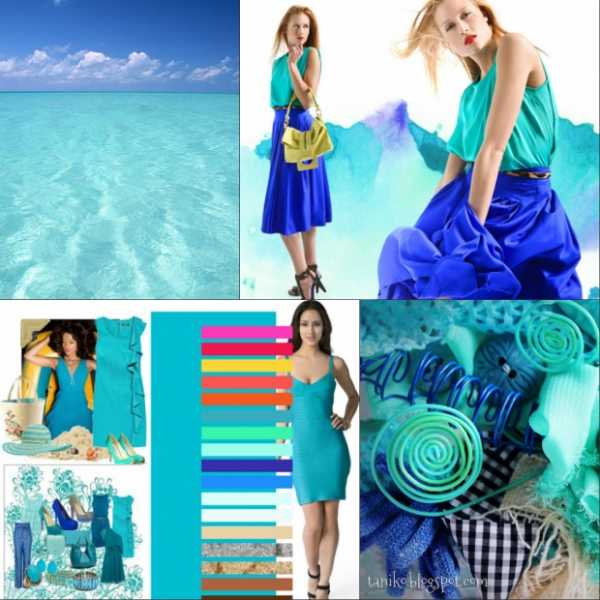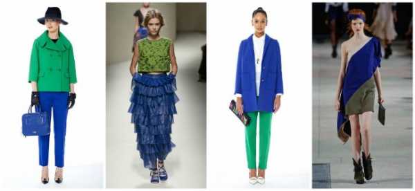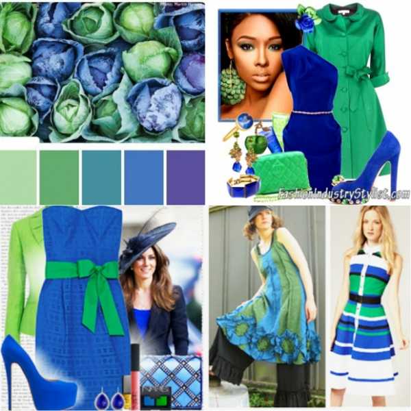 В одежде надо быть осторожнее, вряд ли красиво будет смотреться глубокий синий с ярко-салатовым, на и наоборот, насыщенный зеленый и васильковый.
