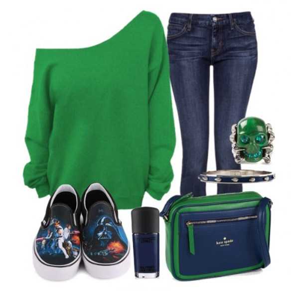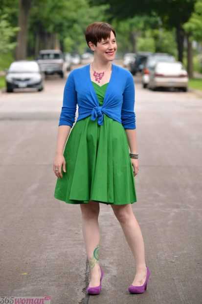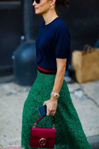 Лучше всего смотрятся именно глубокие и насыщенные оттенки этих двух цветов. Их даже можно сочетать в равных пропорциях, в отличии от других цветов. Зеленая блузка с синими джинсами – идеальный вариант для прогулок. А благородное зеленое пальто с темно-синей сумкой будет отлично смотреться на взрослой женщине.