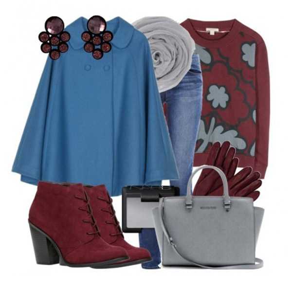 В принципе, такое сочетание цветов в одежде с синим и серым возможно в любых вариантах, и почти в любом случае это будут довольно сдержанные, зрелые образы, от которых так и веет серьезностью.