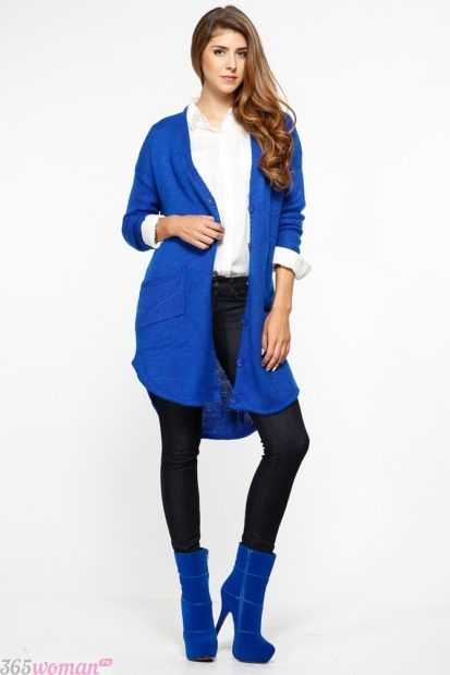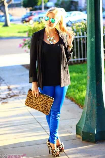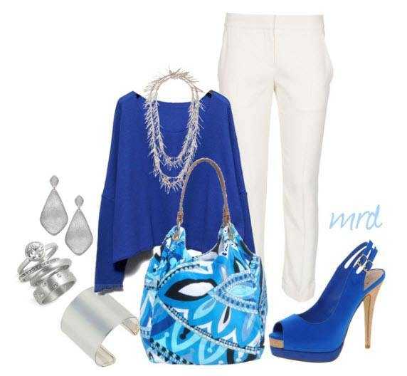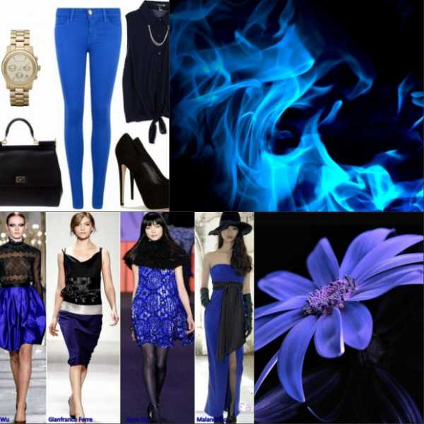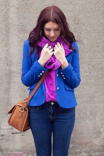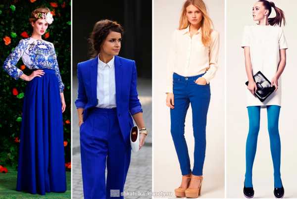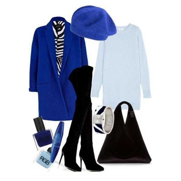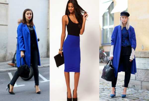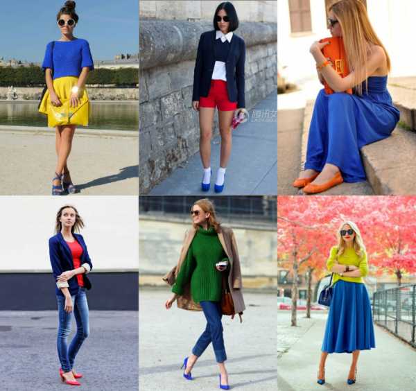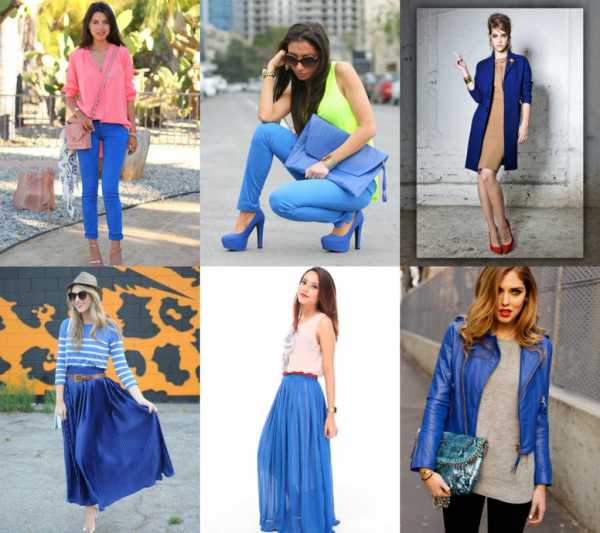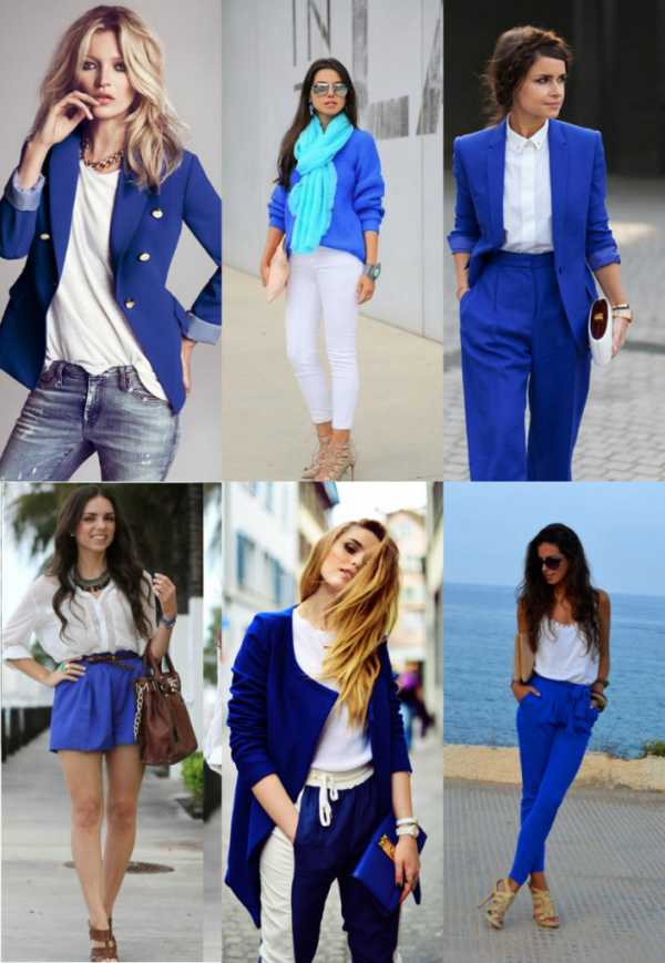 Также стоит попробовать сочетание ярко-синего цвета с голубым, фиолетовым, сиреневым и прочими оттенками. С их помощью образ может получится очень интересным и оригинальным.