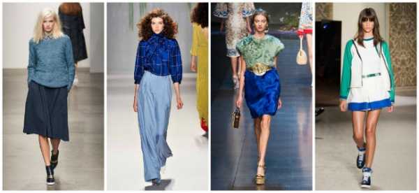 Стилисты уверяют, что синева актуальна в любое время года. При составлении гардероба рекомендуется делать акценты на светлых и темных тонах.