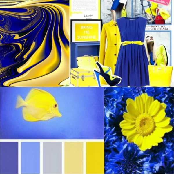 Желтый просто замечательный цвет, особенно в сочетании с синим. Это нам подсказывает окружающий мир – синее небо и яркое солнышко сразу улучшают настроение, хотите вызывать такие же эмоции у окружающих? Эта пара выглядит ярко, контрастно, пронзительно.