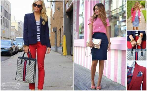Здесь также есть варианты синий низ-красный верх, либо наоборот, выбор зависит только от вашего вкуса. Либо, если вы хотите выглядеть задорной девчонкой – морская тематика специально для вас. Синий, белый и немого красного, это уже не вызывает чувства агрессии у тех, кто вас видит. Выбор, как и всегда, за вами.