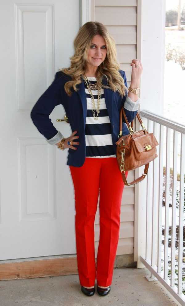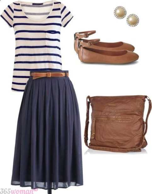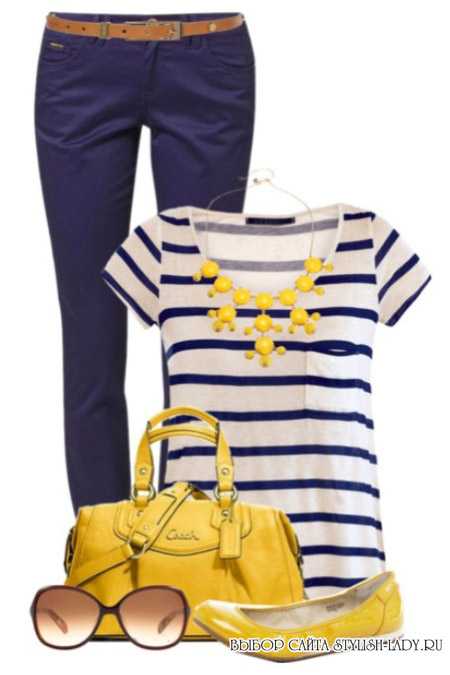 Для более задорного образа можно использовать тельняшку в сине-белую полоску. А уж если надеть полосатую юбку-колокольчик с белым топом… Будьте уверены, все будут смотреть только на вас. В общем, пространства для экспериментов достаточно много, пробуйте!