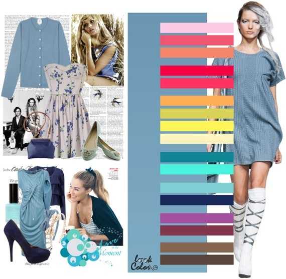 Цветовая палитра имеет такое множество оттенков, что иногда их название даже не вызывает каких-то ассоциаций. В жизни обычно используется примерно 300 сочетаний, и все они крутятся вокруг белых, серых, черный, бежевых, коричневых тонов. Такая ограниченность приводит к появлению тусклых, несколько мрачных гардеробов. Какой цвет сочетается с синим наиболее оригинально: