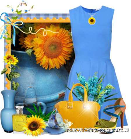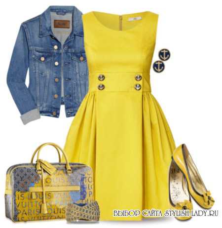 - Желтые оттенки ярко дополняют синеву и создают по-летнему свежий, праздничный образ. Любые вариации этих оттенков органично украшают повседневный гардероб;