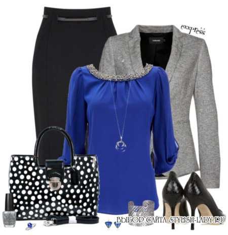Но при грамотном выборе (например, темно-синий и светло-серый или, наоборот, ярко-синий и черно-серый) эти цвета могут сложиться в хорошие, добротные образы, а иногда и свежие.