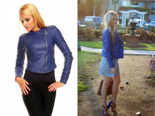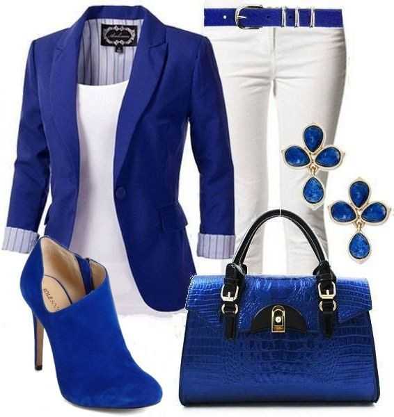 Синий жакет со светлой блузкой станет идеальным комплектом для офиса. Такой жакет с длинным платьем — для вечернего наряда. Коротенький синий жакет девушки могут носить с розовыми нарядами. Следует учесть, что яркие тона непременно комбинируются с яркими, а бледные — с бледными. К одежде синего цвета требуются аксессуаров, чтобы образ стал выглядеть гармонично. Жакет темно-синего цвета может отлично дополнить комплект из синих узких джинсов и голубой блузки.