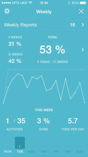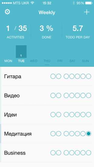 Для этого я воспользовался приложением Weekly, которое позволяет вносить информацию о той деятельности, которую хочется превратить в привычку и следить за статистикой.