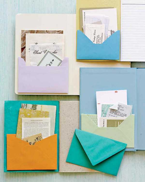А еще можно украсить рабочую тетрадь внутренним карманом. Особенно удобным он станет для школьников. В него можно складывать нужные таблицы и правила по определенному предмету. Сделать такой кармашек можно из цветного листа бумаги или использовать готовый конверт.